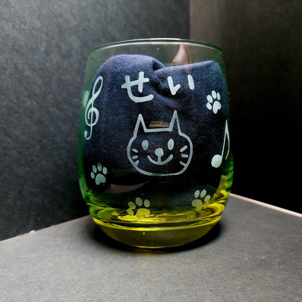 ガラスのコップに模様を彫る体験。 小学校1年生でもサンドブラスト機で自分で彫ることができます。
