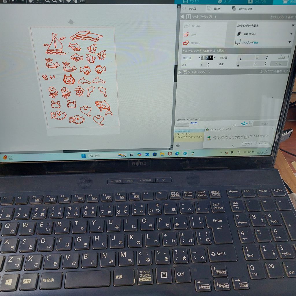 ・パソコンを用いてカッティングシートを作っているところを見学できます。