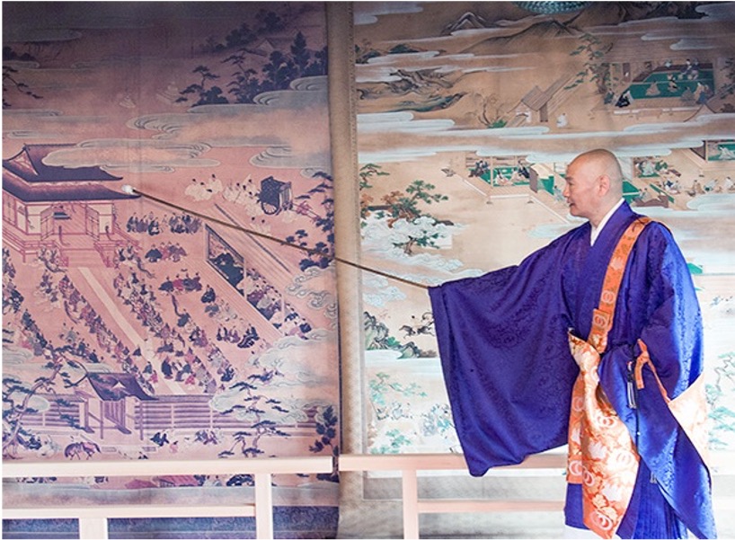 野間大坊では、「美浜町歴史観光ガイド協会」による境内のガイドを行います。見ているだけでは分からない野間大坊の深い歴史を聞きながら境内を巡ります。もっと深く知りたい方は、住職さんから「絵解き」を聞くこともできます。