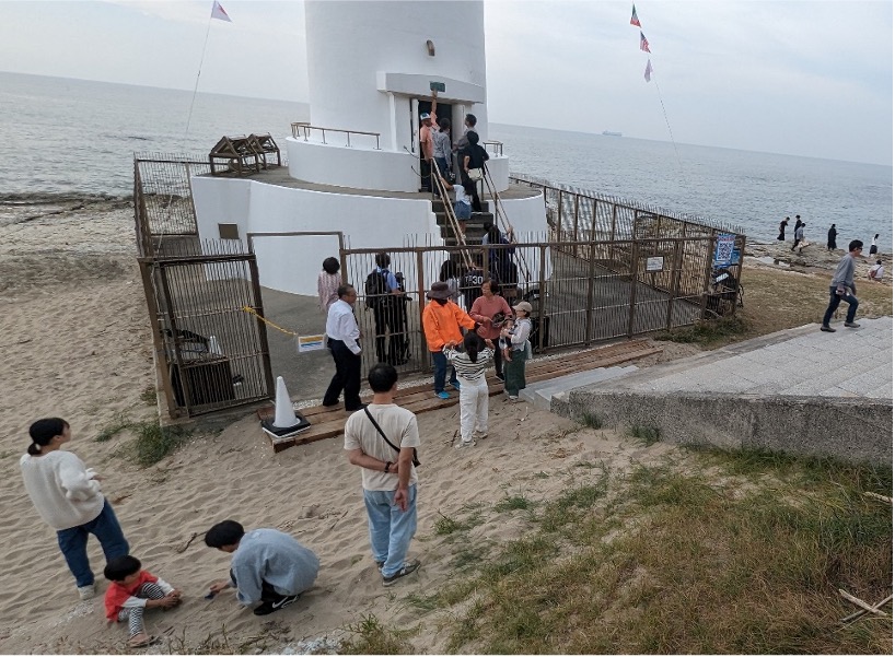 野間埼灯台は、地域団体である「美浜まちラボ」が一般公開を行います。ガイドを聞きながら内部を見学し、最上階のベランダまで登っていきます。灯台の上から見る伊勢湾の景色は格別です。