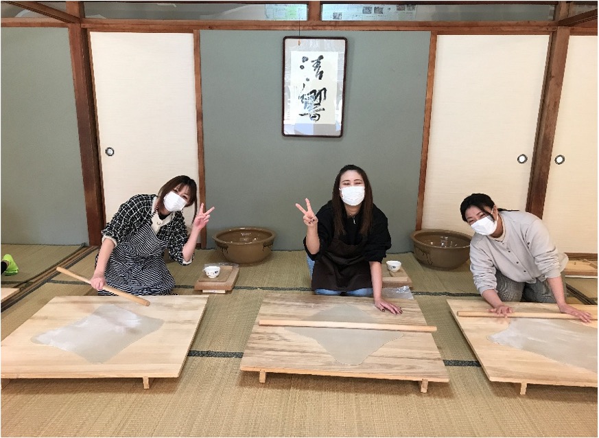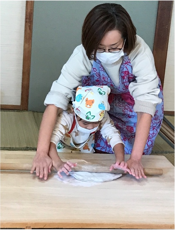 標高480mの岡崎市の山間で採れたそば粉を使い、香り高く甘みのあるそばを打つ体験。石臼で丁寧に挽いたそば粉を使用します。