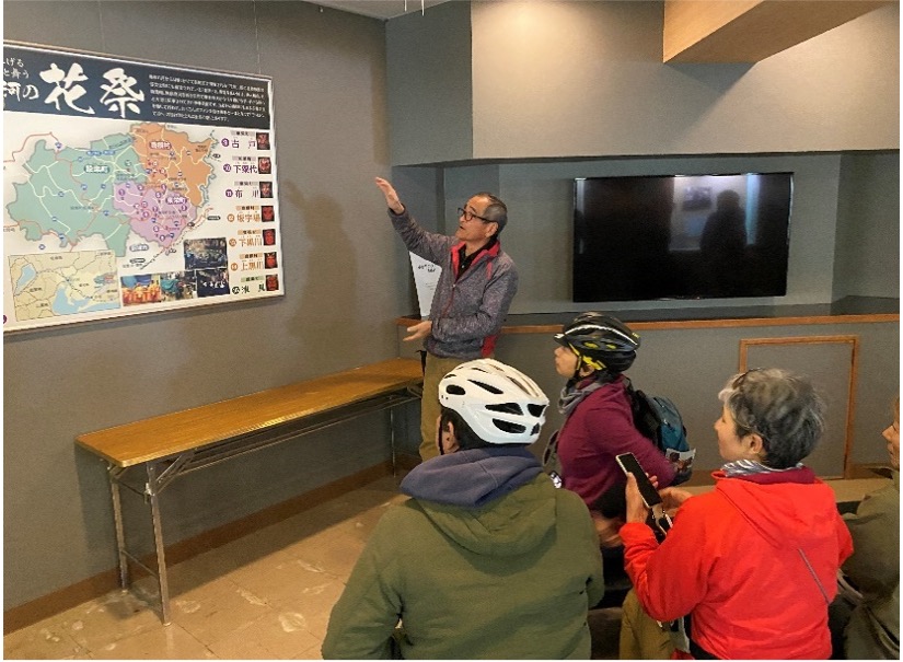 はじめて花祭を見る方向けに、電動アシスト自転車でまちをめぐりながら、花祭の博物館「花祭会館」を会場に花祭について解説をする特別なプログラムです。